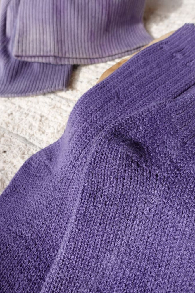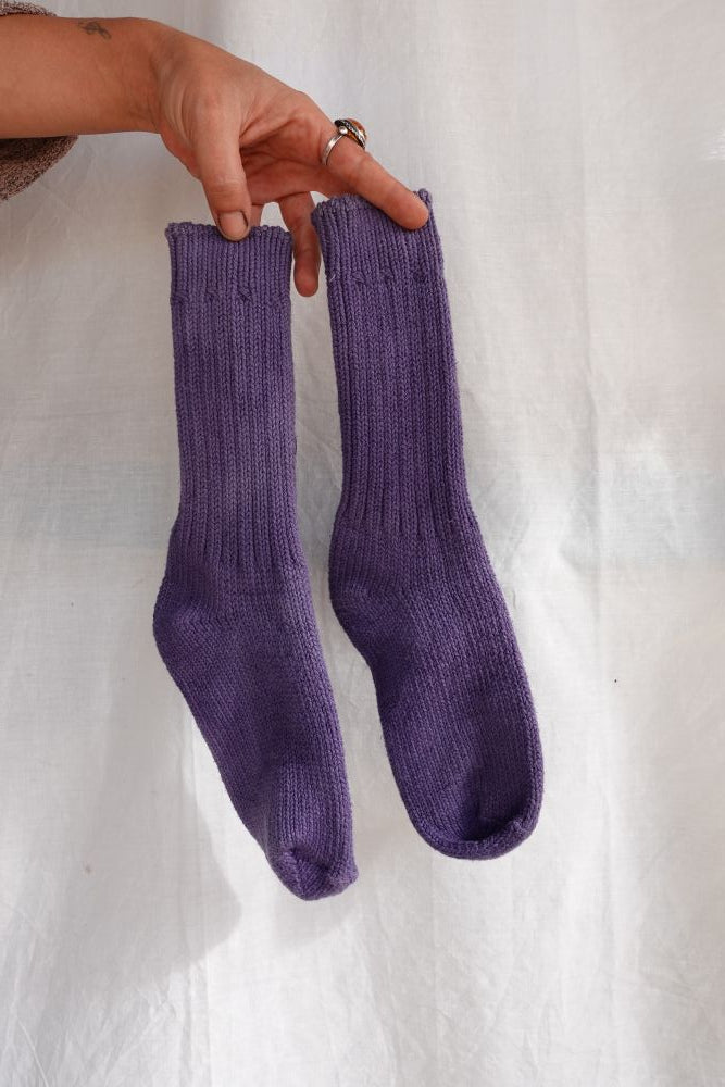 Disfrute del confort y la calidez de los calcetines de algodón rústico, cuidadosamente estampados y teñidos a mano con índigo.
