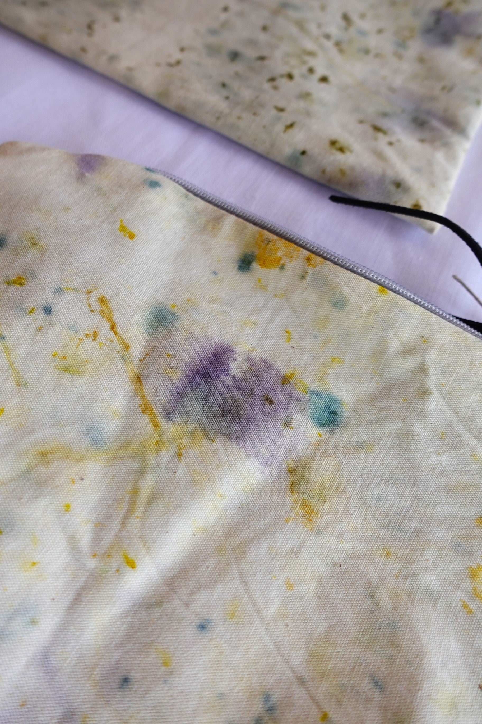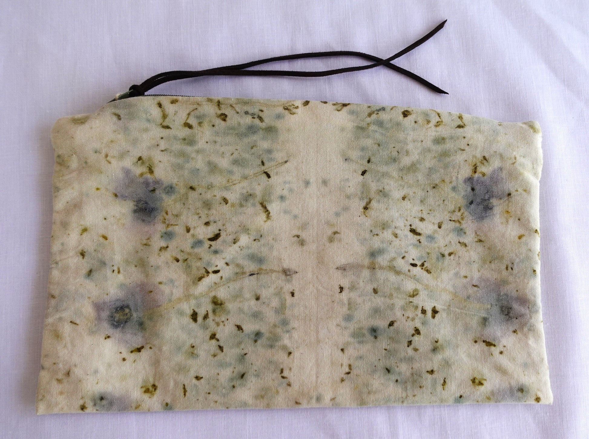 Estas piezas están confeccionadas con gran atención al detalle: teñidas individualmente con técnicas de Eco Print, cada bolsa es única por eso las medidas varían un poco.