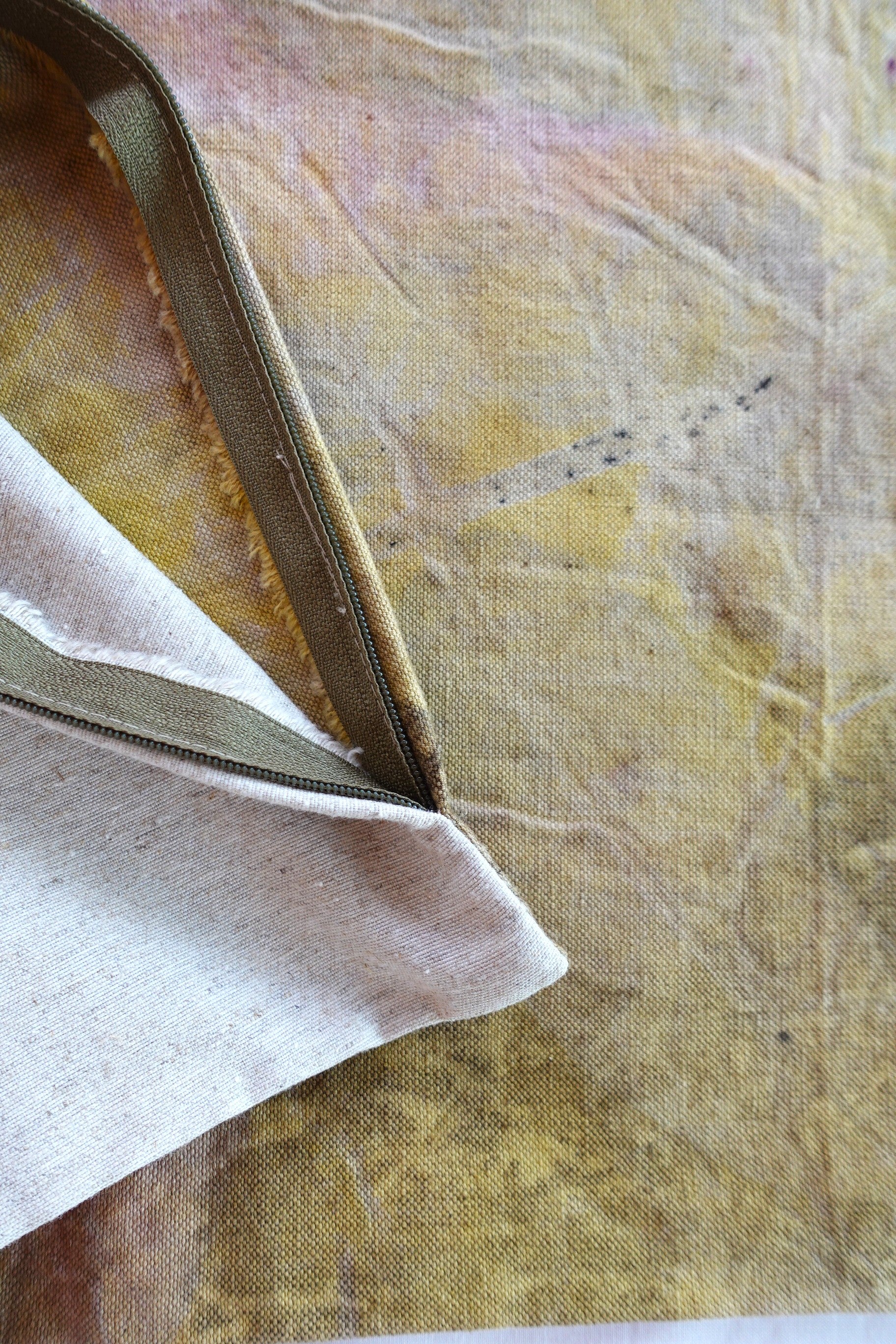 Las fundas de cojines Bonnie están teñidas con elementos naturales. Realizadas en tela de loneta de algodón orgánico de alta calidad, cultivada y confeccionada en España.