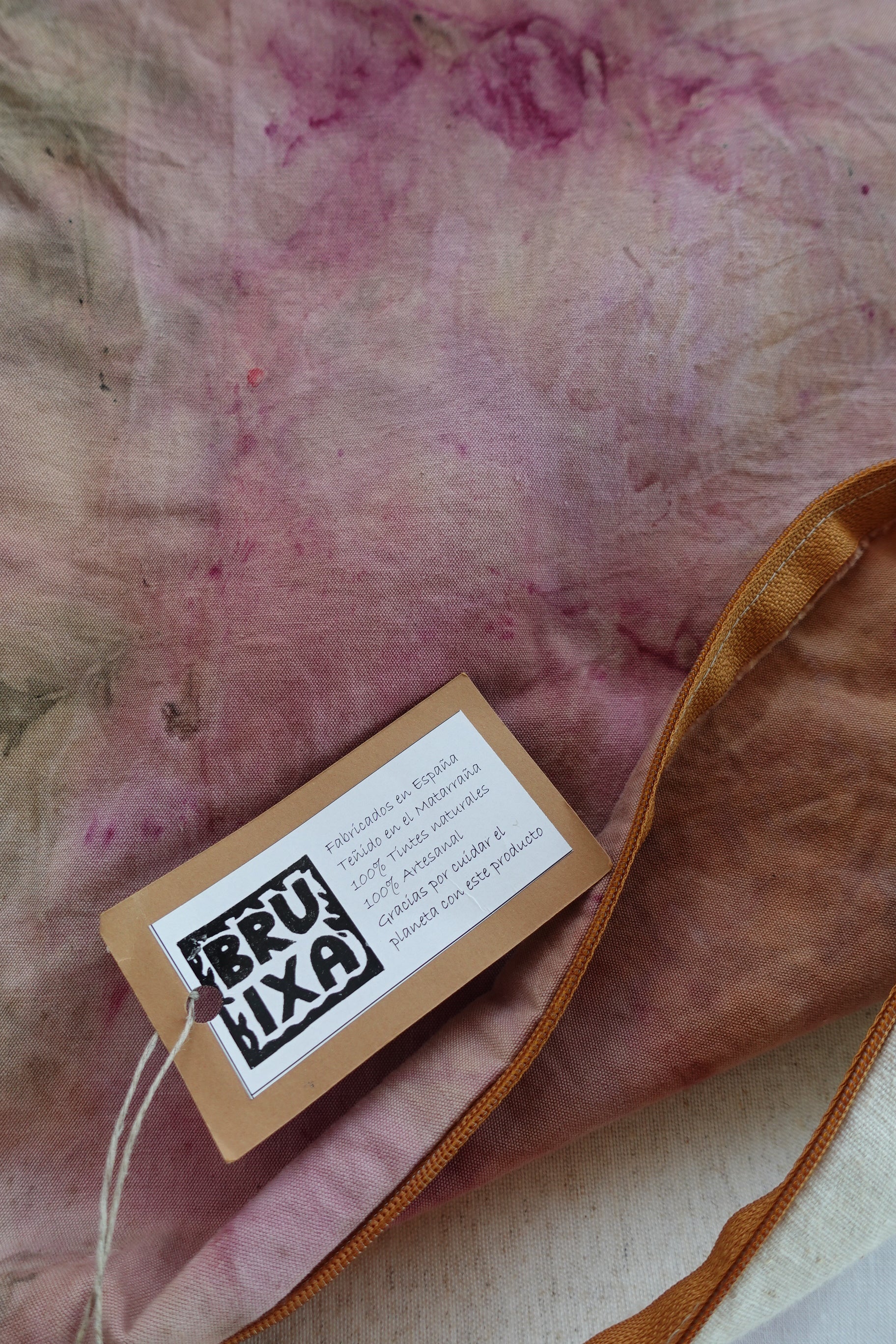Cuidado : Para conservar los colores naturales y vibrantes, se recomienda lavar a mano en agua fría con jabón neutro y evitar la exposición a la luz solar. Al ser una obra realizada con elementos naturales, los colores pueden ir cambiando con el tiempo pero siempre conservando la belleza de una obra natural y sostenible.