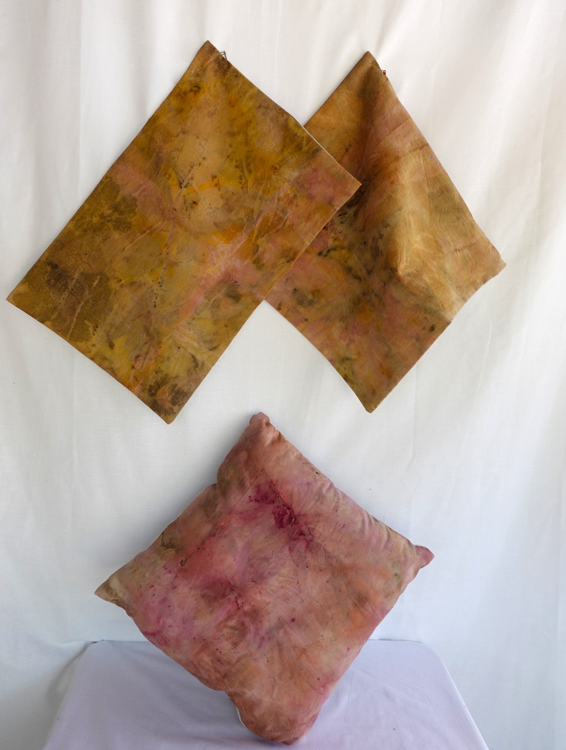 Con un diseño exclusivo creado mediante la técnica de eco print , cada pieza presenta patrones únicos generados a partir de elementos naturales, ofreciendo una belleza orgánica y sostenible. Perfectos para decorar estancias de tu hogar como sofás, sillones, camas... de una forma sana y natural.