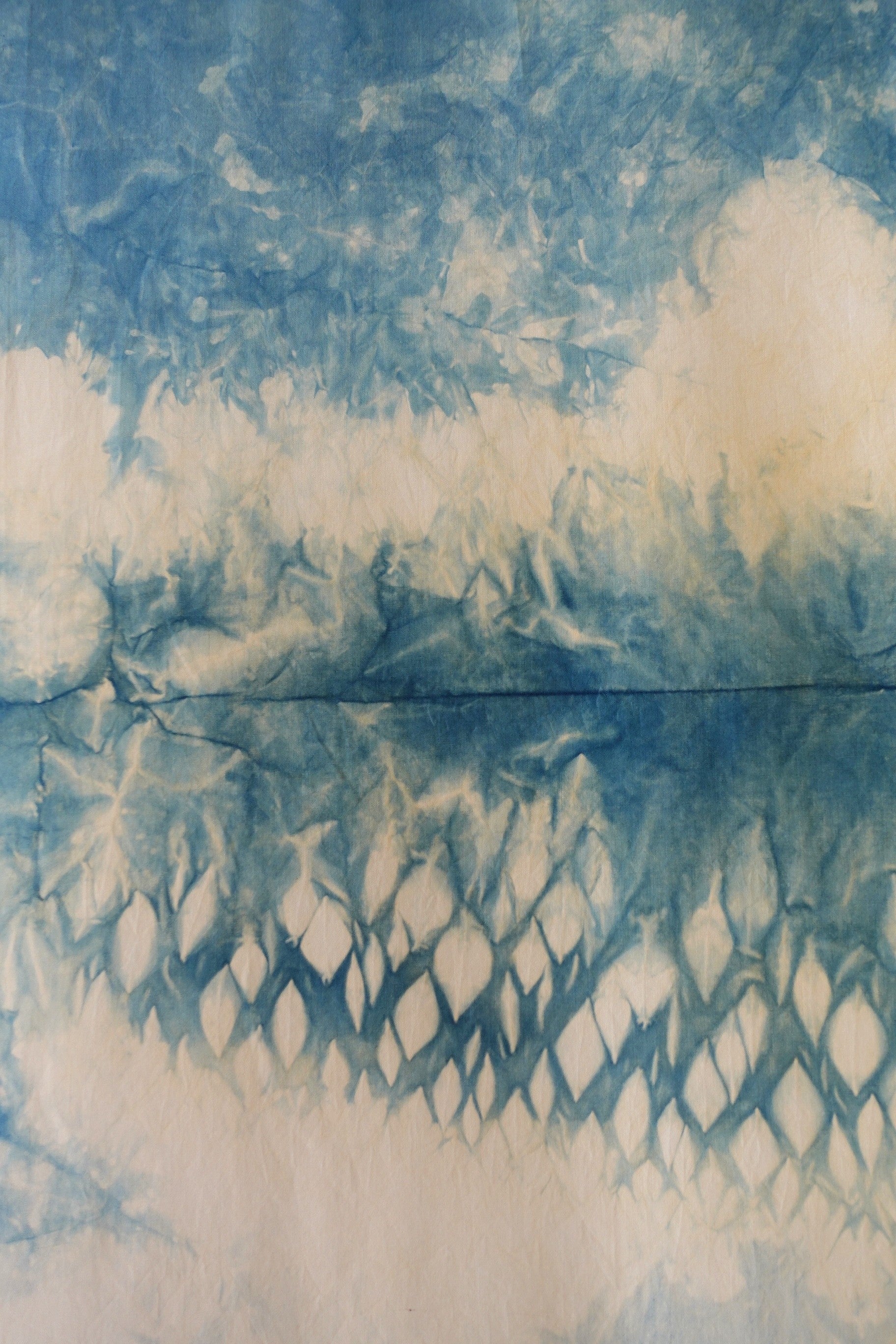 Cuidados : Para conservar los colores naturales y vibrantes, se recomienda lavar a mano en agua fría con jabón neutro. Evite la exposición a la luz solar. Al ser una obra realizada con elementos naturales, los colores pueden ir cambiando con el tiempo pero siempre conservando la belleza de una obra natural y sostenible. Ese cambio de tonalidad es el propio proceso natural de oxidación del índigo y debe verse como parte del proceso, este suceso no conlleva que ese azul vibrante se pierda en ningún momento.