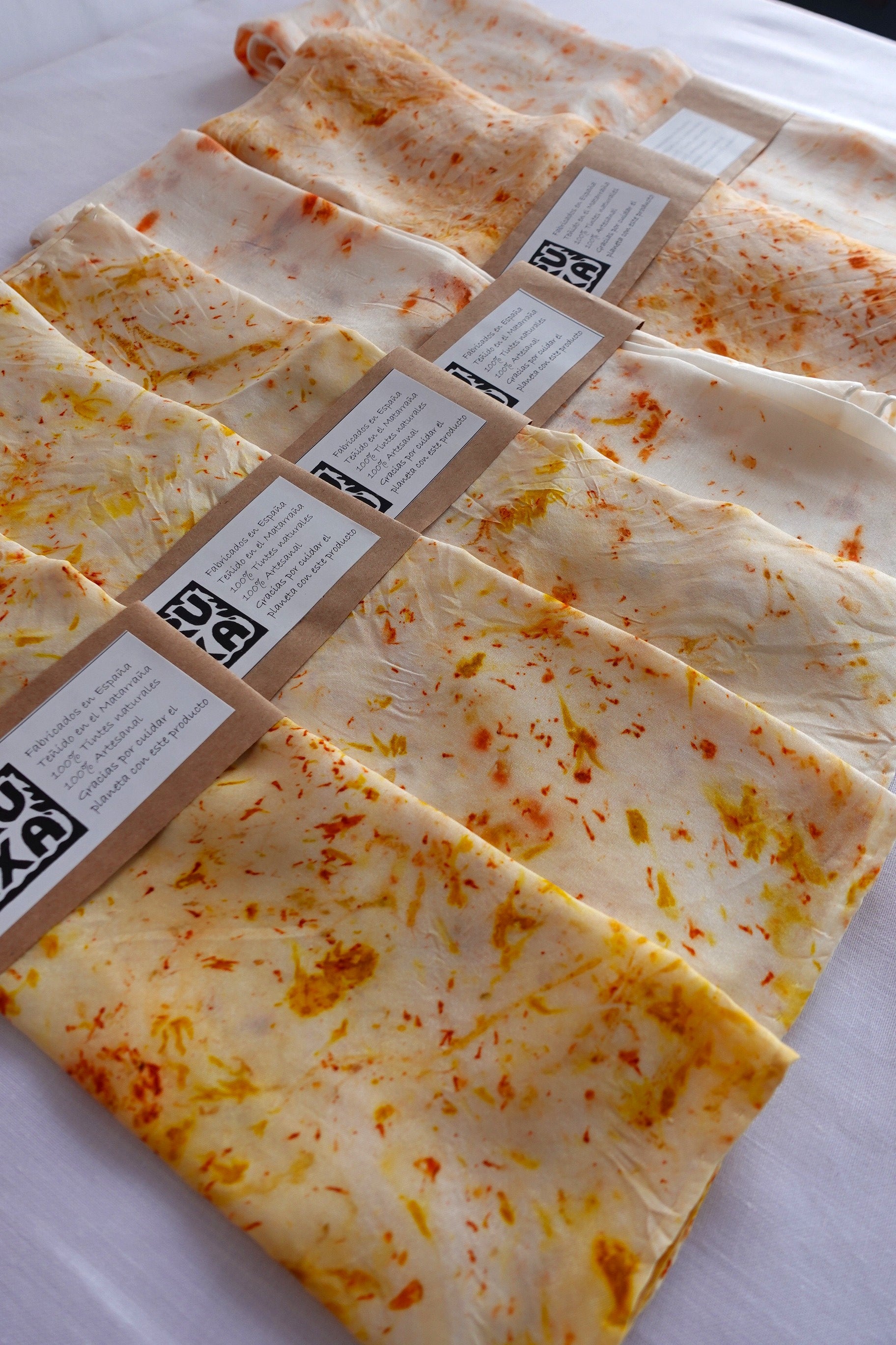 Cada pañuelo está tratado de manera artesanal, utilizando los mismos elementos tintóreos que ves en las fotos del producto. Sin embargo, debido a la naturaleza del proceso creativo, cada uno es único y puede variar en detalles de color y patrón respecto a las imágenes mostradas. Por lo tanto, el artículo que recibirás será muy similar, pero no idéntico al de las fotografías. Esta variación es parte del encanto de la artesanía y asegura que cada pieza sea exclusiva.