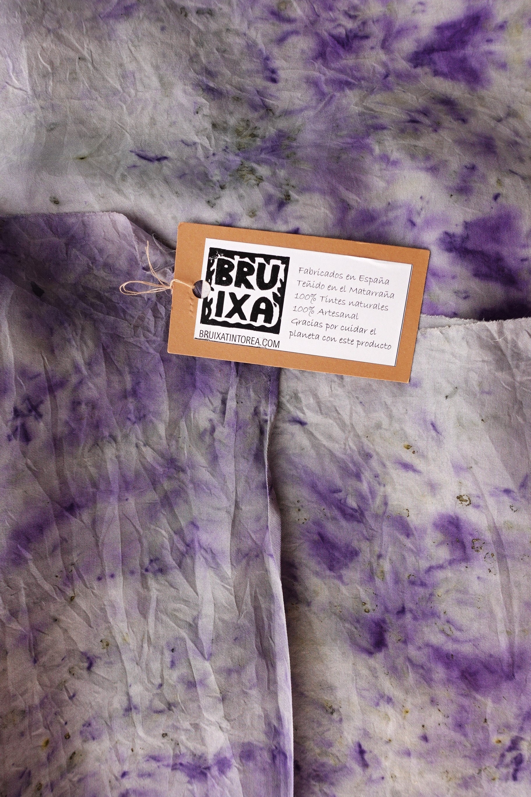 Cuidado : Para conservar los colores naturales y vibrantes, se recomienda lavar a mano en agua fría con jabón neutro y evitar la exposición a la luz solar. Al ser una obra realizada con elementos naturales, los colores pueden ir cambiando con el tiempo pero siempre conservando la belleza de una obra natural y sostenible.