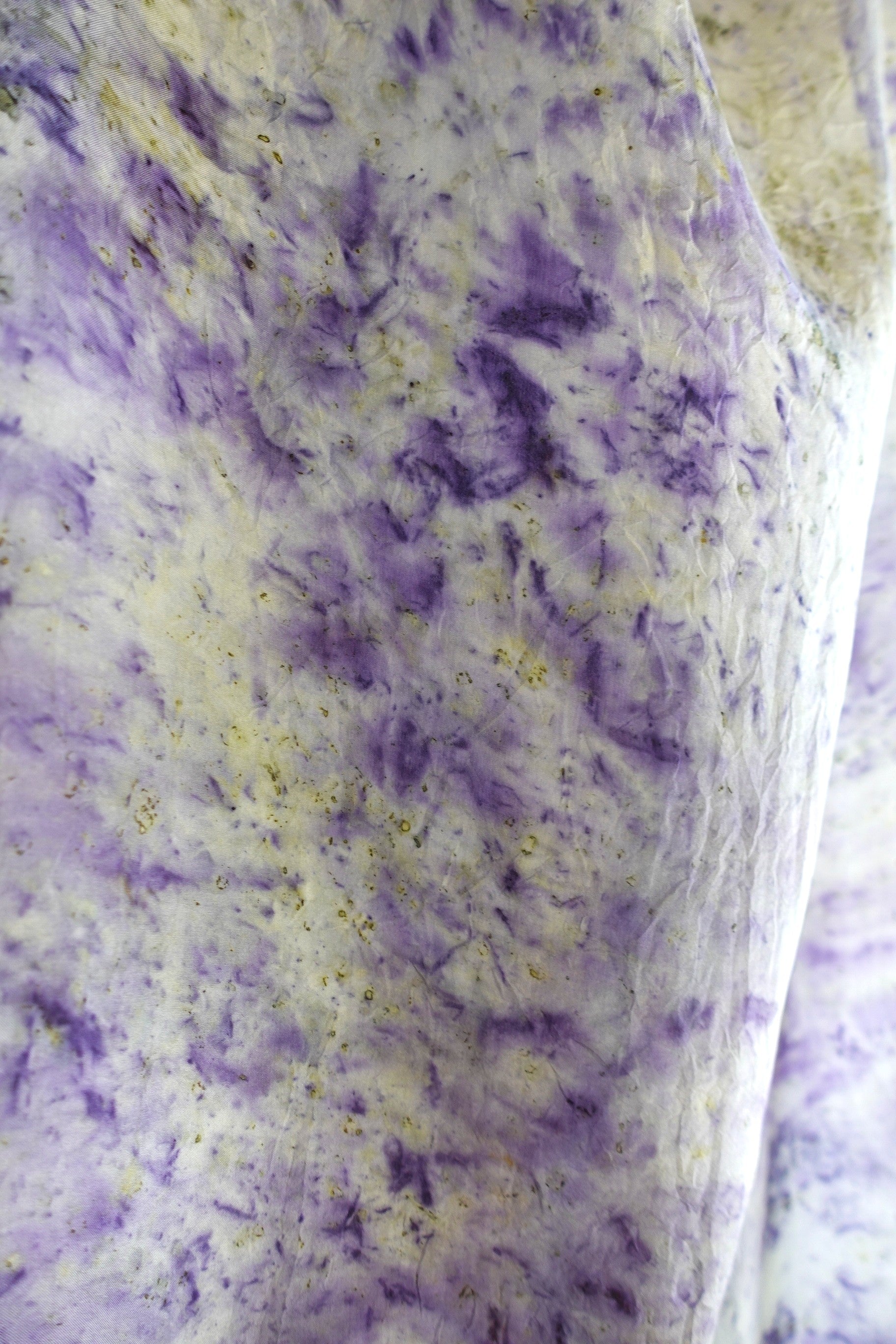 El modelo Spellman es una tela estampada única realizada en tela de seda 100% de alta calidad. Con un diseño exclusivo creado mediante la técnica de eco print , cada pieza presenta patrones únicos generados a partir de elementos naturales, ofreciendo una belleza orgánica y sostenible. Con unas medidas de 93 x 265 cm, esta tela es ideal para la decoración del hogar: puedes montarla sobre un bastidor o colgarla en un listón de madera creando un tapiz de pared para darle un toque artístico y natural a cualquier espacio.