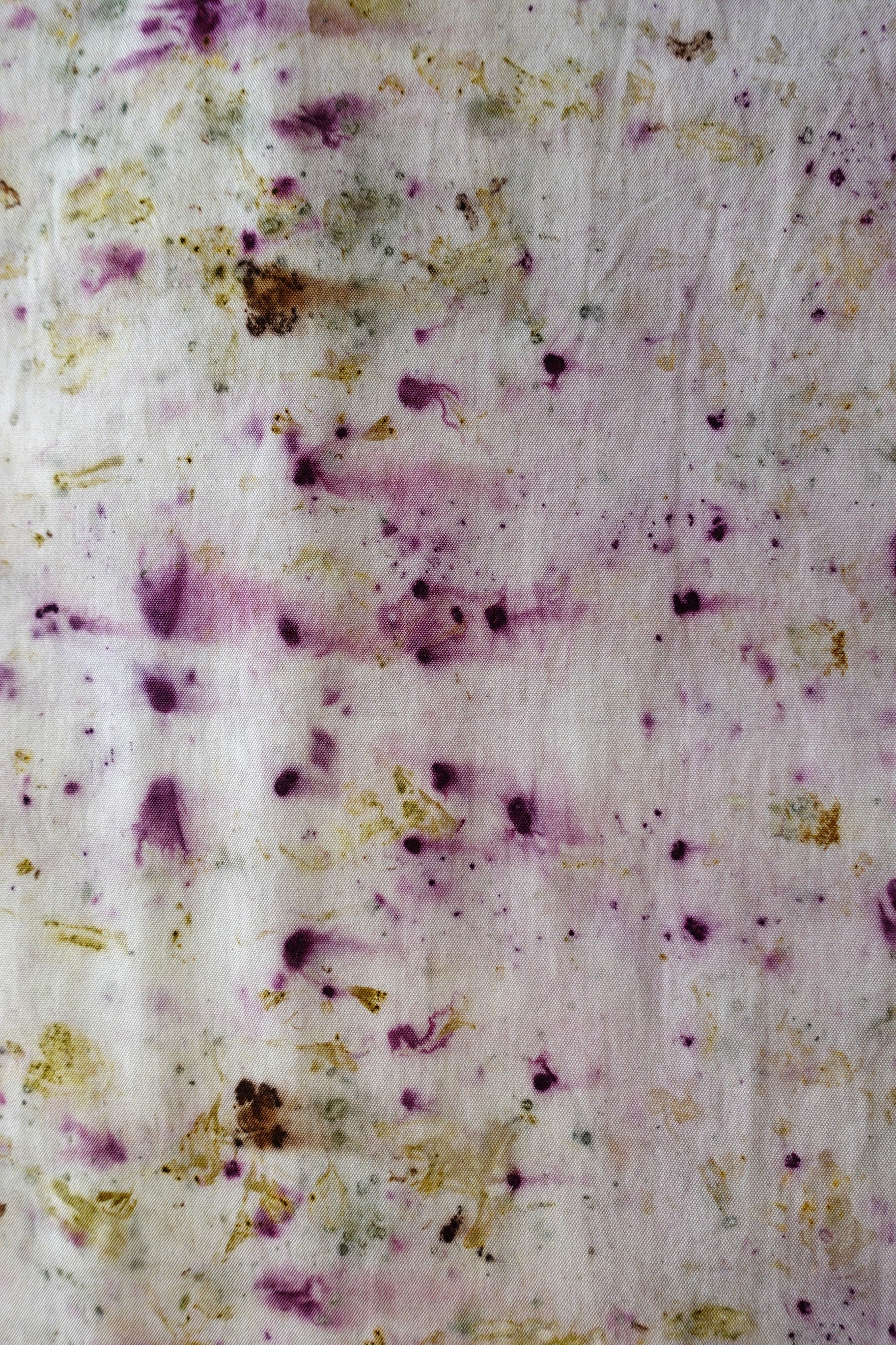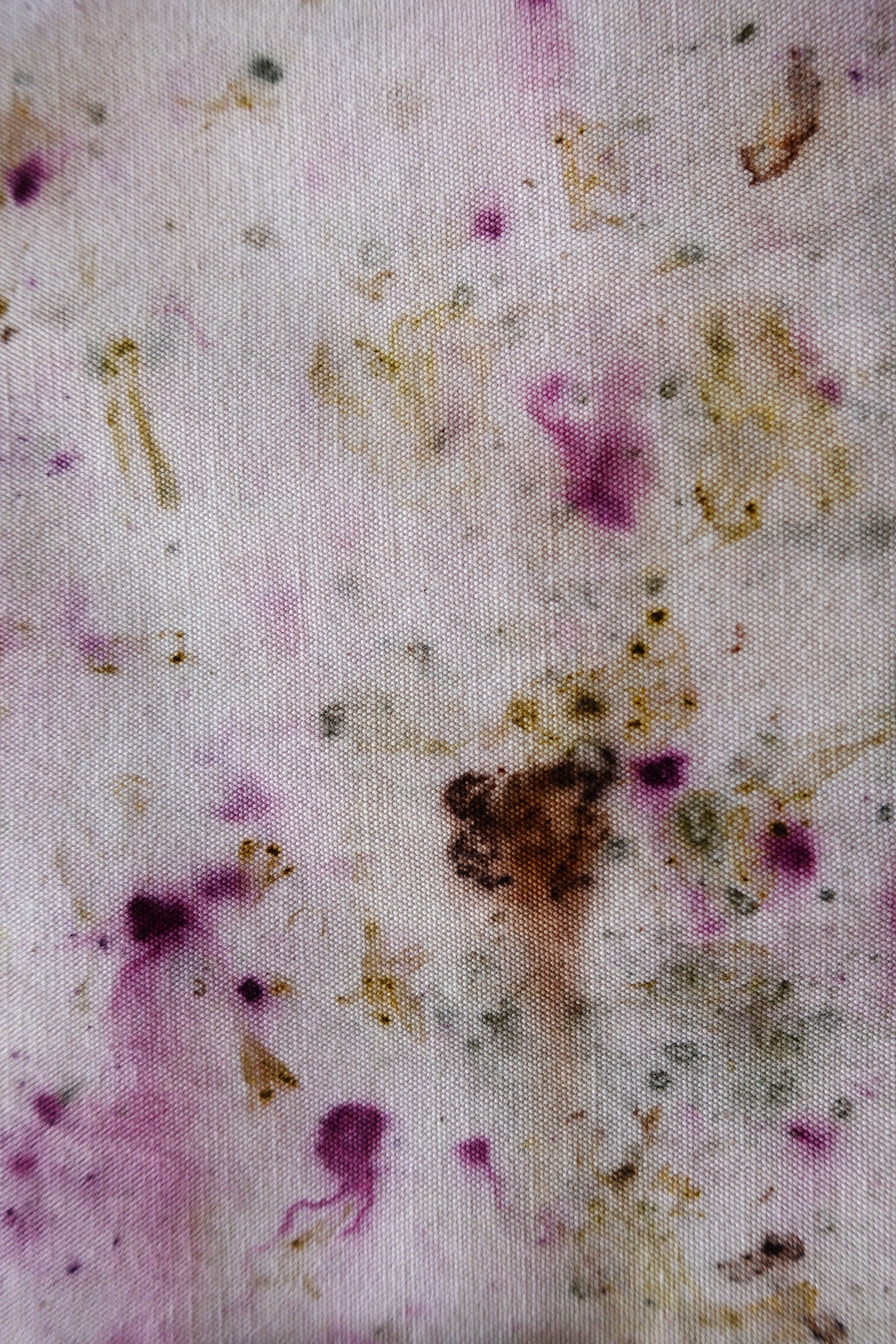 La tela superior es una loneta de algodón orgánico y la tela inferior lino, ambos de alta calidad, siendo telas cultivadas y confeccionadas en España. Cada pieza presenta patrones únicos generados a partir de elementos naturales, ofreciendo una belleza orgánica y sostenible. Esta tela es ideal para la decoración del hogar y ha sido diseñada y pensada como ropa de mesa pero puedes montarla sobre un bastidor o colgarla en un listón de madera creando un tapiz de pared para darle un toque artístico y natural a cualquier espacio.